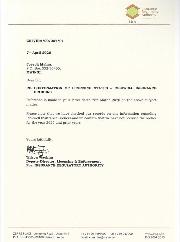 Nairobi, April 23, 2026 — Fresh documents and regulatory confirmations have triggered a major corruption storm at the Football Kenya Federation (FKF), with allegations that Sh42.4 million in tournament funds was paid on the opening day of the African Nations Championship (CHAN 2024) to Riskwell Insurance Brokers Ltd — a company incorporated just 40 days earlier, lacking any licence from the Insurance Regulatory Authority (IRA) and showing every hallmark of a shell entity.359
