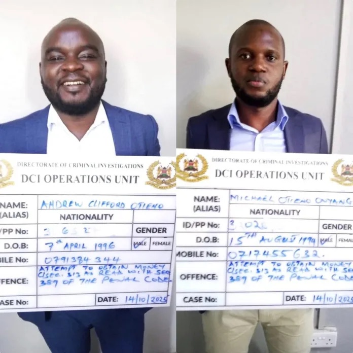 The DCI announced the arrest of Michael Otieno Onyango and Andrew Clifford Otieno, the masterminds of the scheme.
